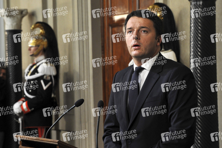 Pressekonferenz mit Matteo Renzi nach seiner Ernennung zum designierten Ministerpräsidenten von Italien im Quirinale-Palast. Rom, 17.02.2014