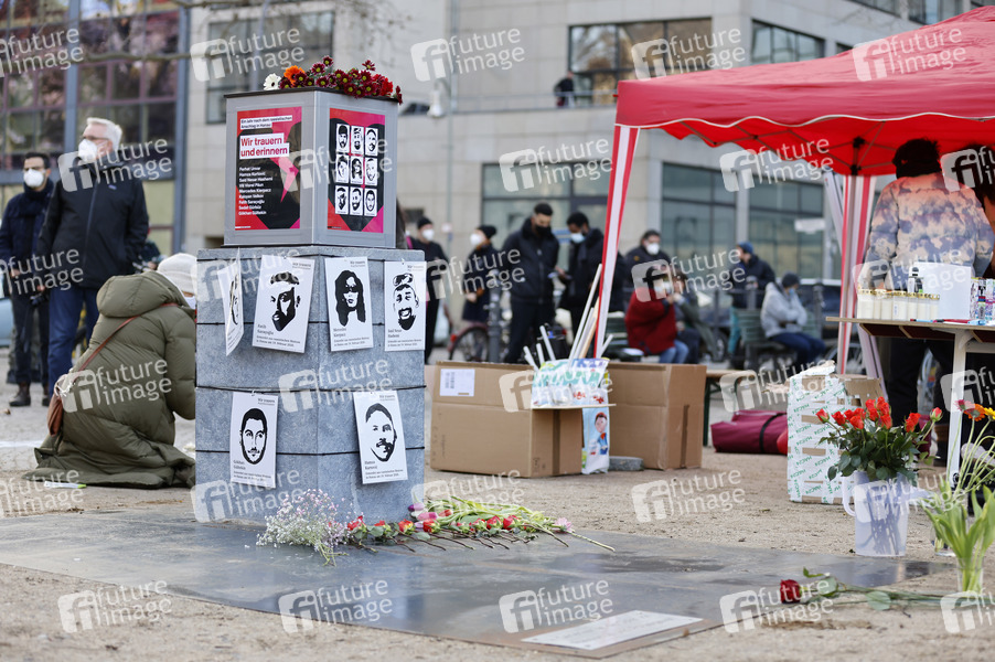 Gedenkveranstaltung zum ersten Jahrestag des rassistischen Anschlags in Hanau am Oranienplatz. Vor einem Jahr tötete ein Rechtsextremist in Hanau zehn Menschen und sich selbst. Berlin, 19.02.2021