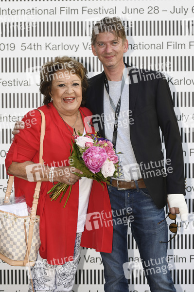 Jirina Bohdalova und Jiri Strach bei der Ankunft am Hoptel Pupp auf dem 54. Internationalen Filmfestival Karlovy Vary 2019. Karlsbad, 04.07.2019