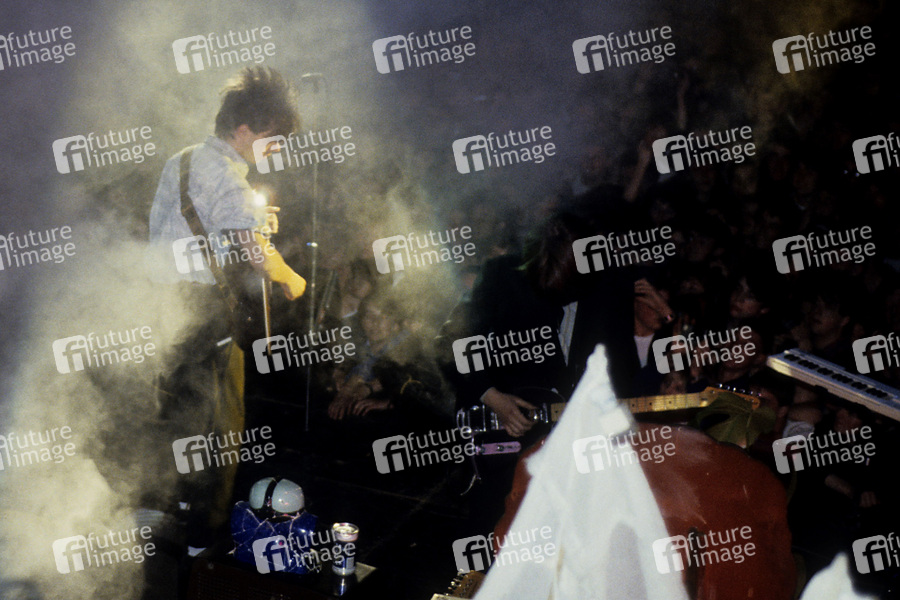 Ian McCulloch und Will Sergeant von Echo & the Bunnymen live bei einem Konzert in der St. George's Hall. Liverpool, 12.05.1984