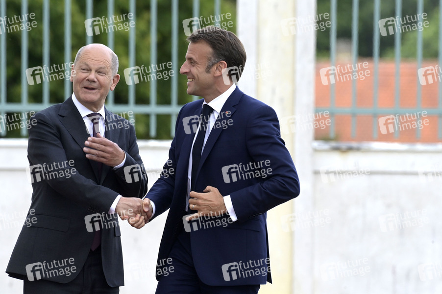 Olaf Scholz und Emmanuel Macron beim Treffen des Deutsch-Französischen Ministerrats im Gästehaus der Bundesregierung Schloss Meseberg. Meseberg, 28.05.2024