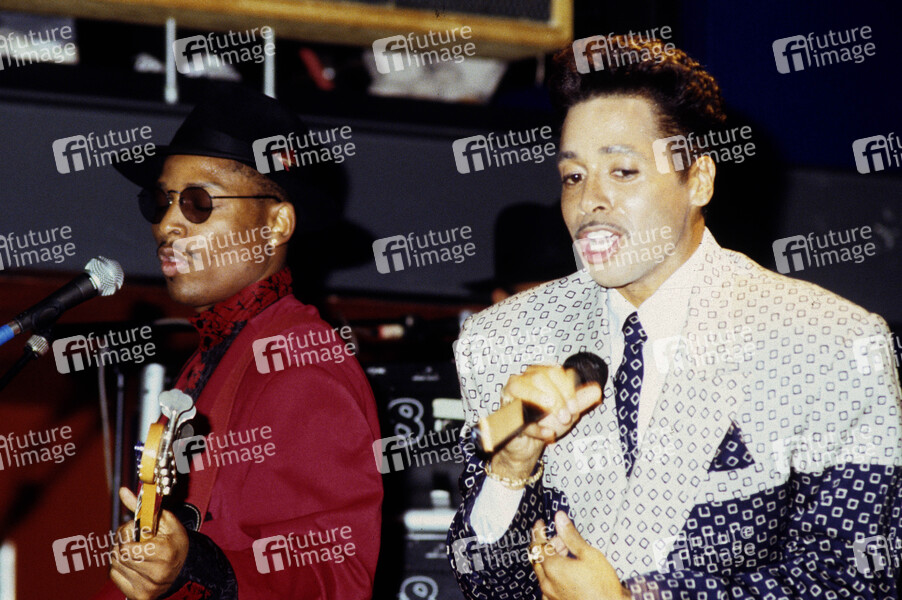 Terry Lewis und Morris Day von The Time live bei einem Showcase zum Album 'Pandemonium' im Subterania. London, 31.08.1990