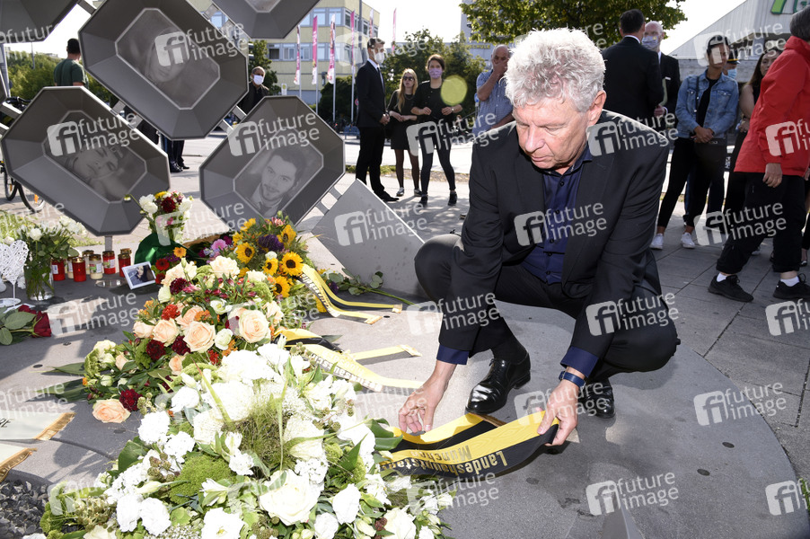 Dieter Reiter bei einer Gedenkveranstaltung und Kranzniederlegung am Denkmal für die Opfer des Attentats am Olympia-Einkaufszentrum, bei dem am 22. Juli 2016 neun Menschen getötet wurden. München, 22.07.2020
