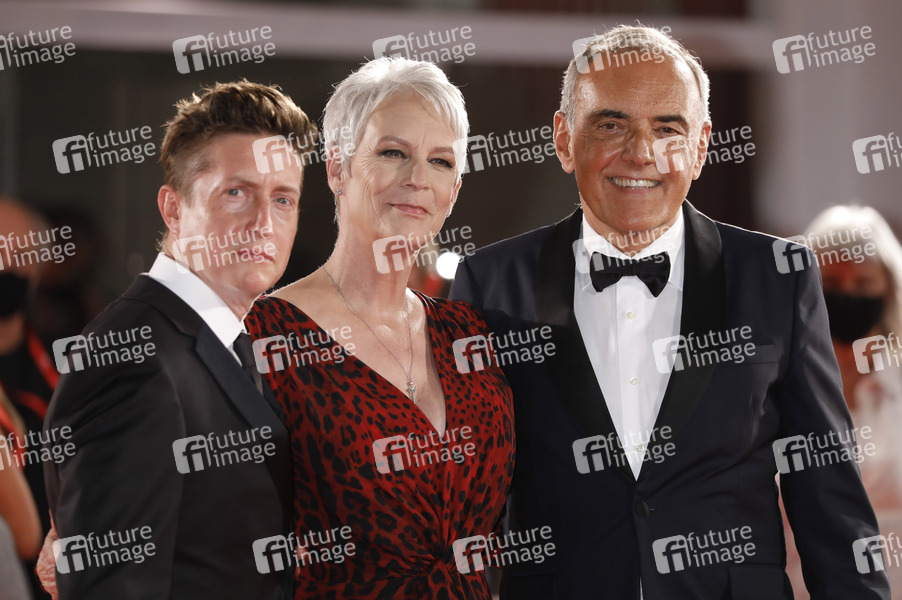 David Gordon Green, Jamie Lee Curtis and Alberto Barbera bei der Premiere des Kinofilms 'Halloween Kills' auf der Biennale di Venezia 2021 / 78. Internationale Filmfestspiele von Venedig im Palazzo del Cinema. Venedig, 08.09.2021