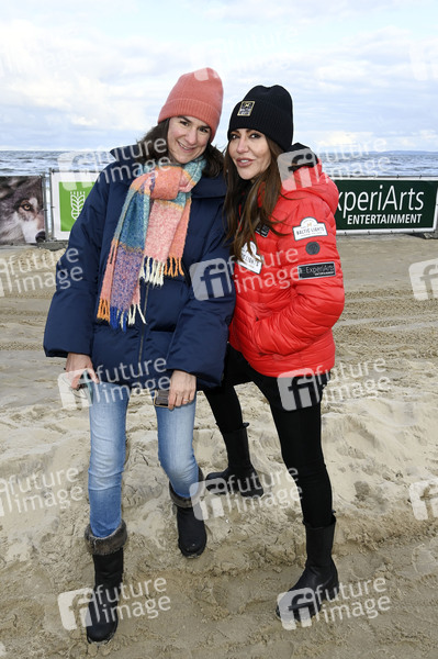 Nadine Möllers und Simone Thomalla beim Kennenlernen der Hunde und beim Renntraining für die Baltic Lights 2022 an der Seebrücke Heringsdorf. Heringsdorf, 04.03.2022