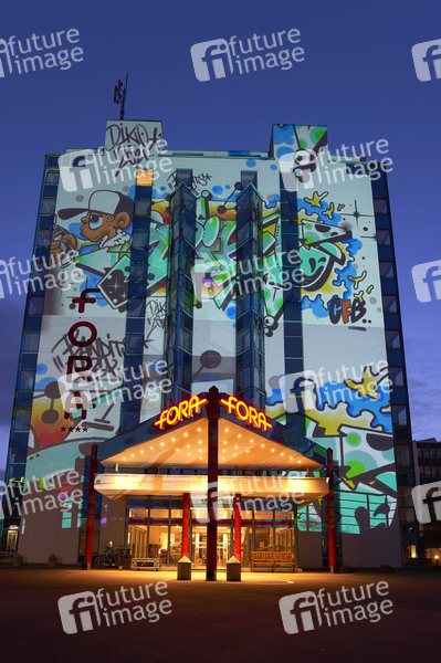 '3 Tage, 3 Wochen, 3 Künstler - Wir leuchten, um gesehen zu werden' - Graffiti-Kunst von Make Your Mark am Fora Hotel. Gemeinsam mit dem Unternehmen allstars event GmbH, die Aktionen wie 'Hannover leuchtet' und 'Night of Light' umsetzten, wurde dieses Projekt initiiert, um auf drei wichtige Branchen aufmerksam zu machen, die besonders unter den Corona-Maßnahmen leiden, die Hotelbranche, die Veranstaltungsbranche, sowie Kunst und Kultur. (Bildfreigabe des Fora Hotels, der allstars event GmbH und des Künstlers Make your Mark liegt vor) Hannover, 22.02.2021