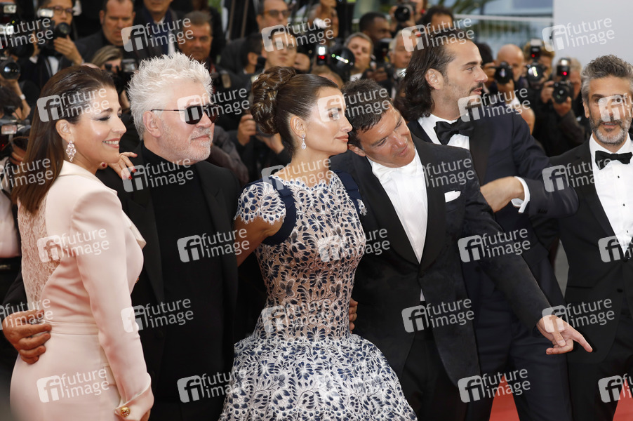 Nora Navas, Pedro Almodovar, Penelope Cruz, Antonio Banderas, Asier Etxeandia und Leonardo Sbaraglia bei der Premiere von 'Dolor y gloria / Leid und Herrlichkeit / Pain and Glory' auf dem Festival de Cannes 2019 / 72. Internationale Filmfestspiele von Cannes im Palais des Festivals. Cannes, 17.05.2019
