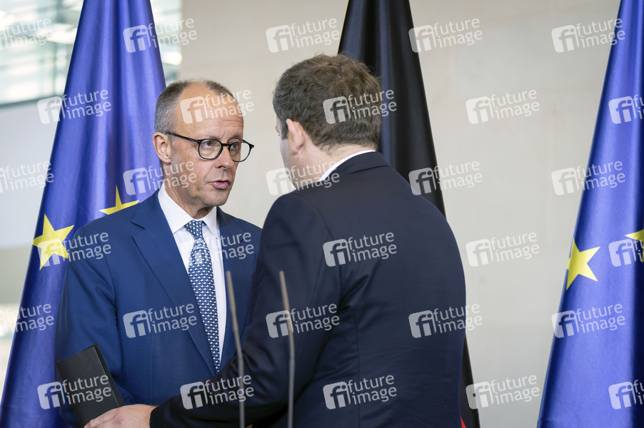 Friedrich Merz und Lars Klingbeil bei der Pressekonferenz im Anschluss an den Stahlgipfel im Bundeskanzleramt. Berlin, 06.11.2025