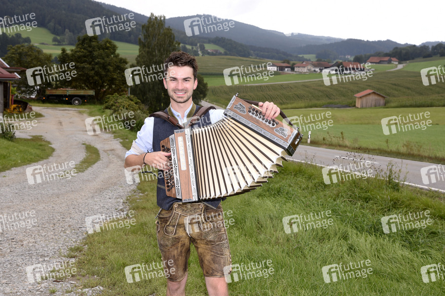 Entertainment, Prominenz, Celebrities, Celebrity, Homestory, Musiker, Akkordeonspieler, Sänger, Nachwuchskünstler in der volkstümlichen Musik, Schwarzhof, Bauernhof
