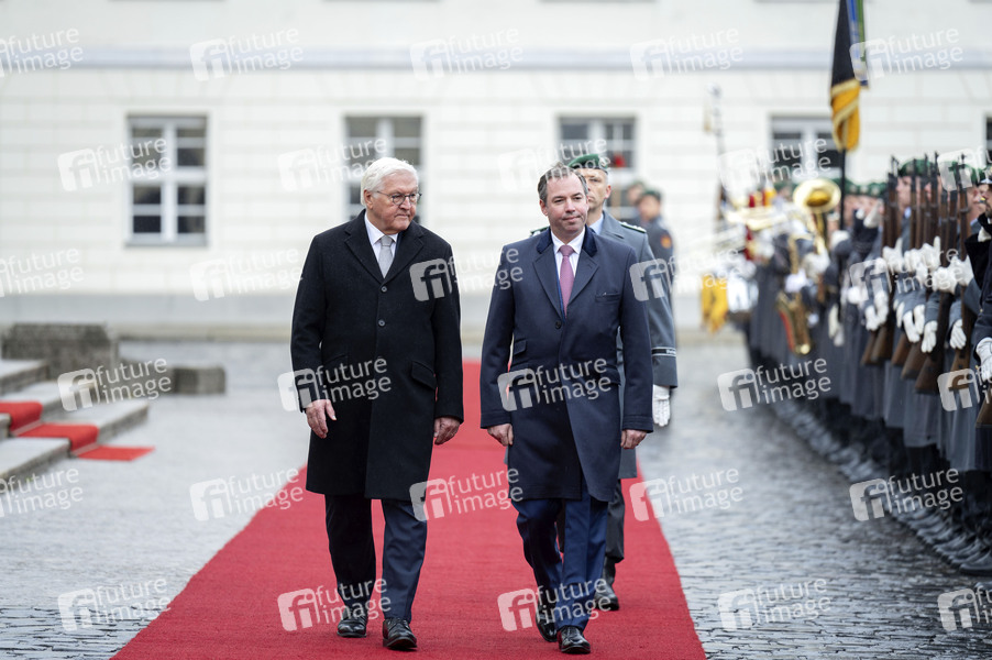 Frank-Walter Steinmeier und Guillaume V. Großherzog von Luxemburg bei der Begrüßung des Großherzogs von Luxemburg mit militärischen Ehren und zum gemeinsamen Gespräch im Schloss Bellevue. Berlin, 27.10.2025