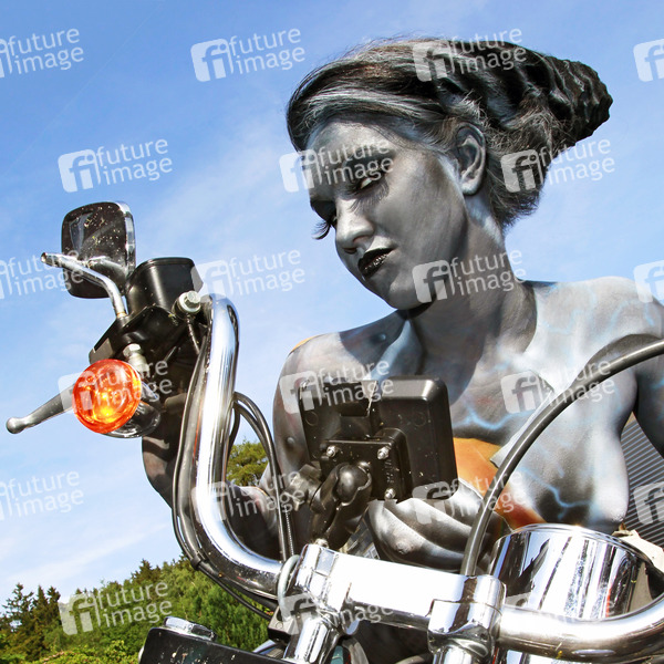 Bodypainting, Erotik, Frau, Mädchen, nackt, draußen, weiblich, Motorrag, Körperkunst, Kunst, Malerei, erotic, woman, girl, nude, outdoor, female, body art, body painting, motorbike, motorcycle