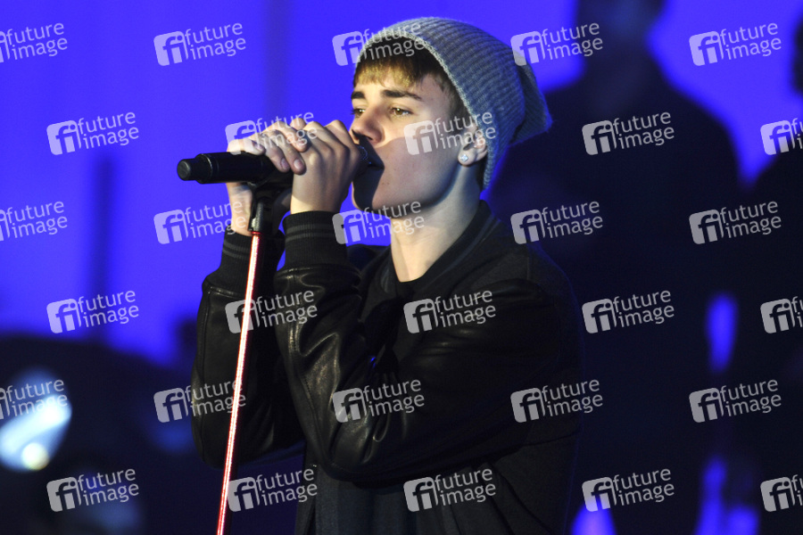 Justin Bieber Konzert und Einschalten der Weihnachtsbeleuchtung im Westfield Shopping Centre, Shepherd's Bush, London