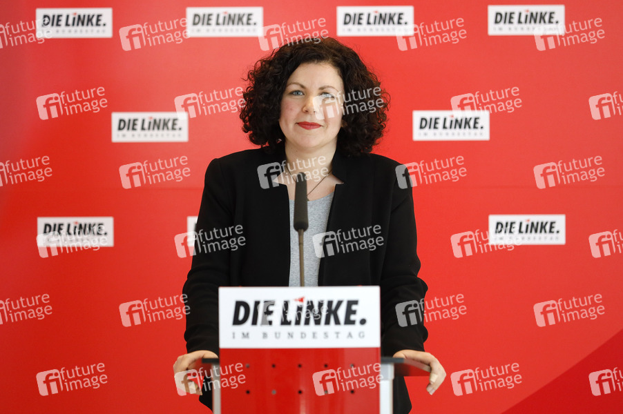 Politik, Pressekonferenz, PK, Reichstag, Sitzung, Regierung, Deutscher Bundestag, Demokratie, Abgeordnete, Parlament, Parlamentsgebäude, Bundesregierung, Volksvertreter, MdB, Mitglied des Bundestages, Politikerin, Fraktionsvorsitzende der Partei Die Linke