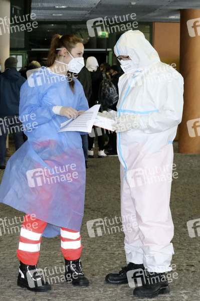 Reger Andrang bei den freiwilligen Corona-Tests für Abschlussklässler des Landkreises Görlitz durch das DRK im Berufsschulzentrum Christoph Lüders. (Symbolbild, Themenbild) Görlitz, 18.01.2021