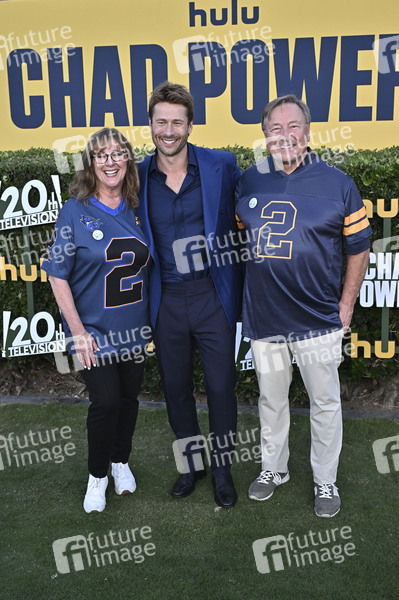 Cyndy Powell, Glen Powell und Glen Powell Sr. bei der Premiere der Hulu-Serie 'Chad Powers' im Rose Bowl Stadium. Pasadena, 25.09.2025