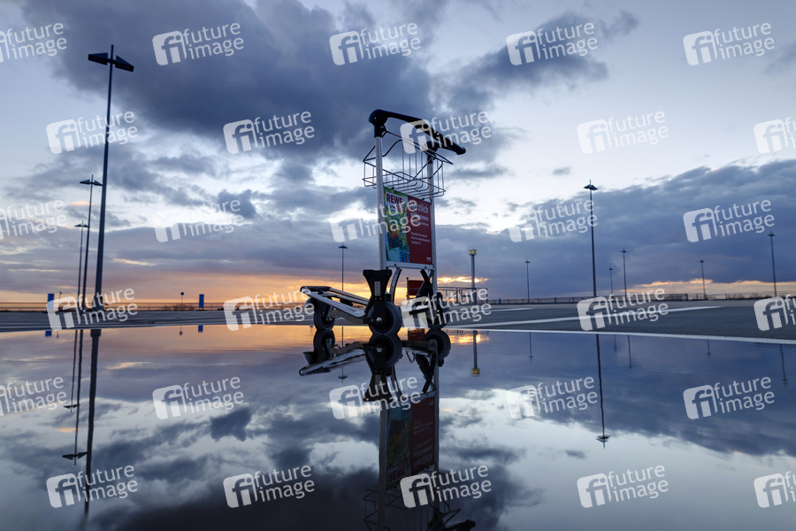 Ein Kofferkuli am Köln Bonn Airport, wo es wegen des Coronavirus zu Flugstornierungen kommt. Köln, 09.03.2020