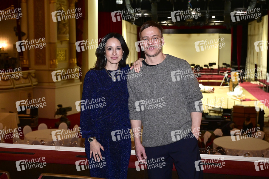 Stephanie Stumph und Tom Wlaschiha bei der Pressekonferenz zum SemperOpernball 2025 in der Semperoper. Dresden,06.02.2025