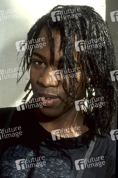 Melvin Brannon II von Dan Reed Network bei einem Fotoshooting am Hotel. London, 01.08.1990