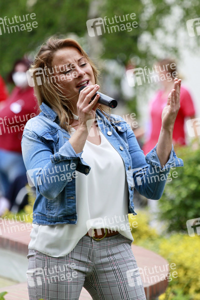 Sängerin, Schlager, Prominenz, Celebrity, Celebrities, Auftritt, live, Unterhaltung, Entertainment, Kultur, Altenheuim, Pflegeheim, Open Air, Corona, Sars-CoV-2, Covid-19, Coronavirus, Coronakrise, Corona-Krise, Corona-Pandemie, Coronamaßnahmen, Corona-Schutz, Kontaktverbot, Mindestabstand, Social Distancing, Abstand, Abstandhalten, Abstandsregel