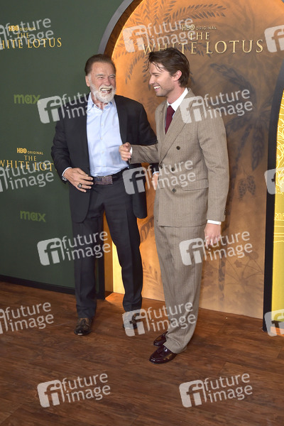 Arnold Schwarzenegger, mit Sohn Patrick Schwarzenegger bei der Premiere der 3. Staffel der HBO Serie 'The White Lotus' im Paramount Theater. Los Angeles, 10.02.2025