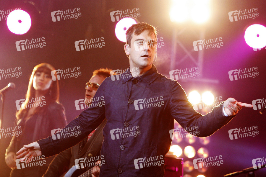Robbie Williams Gratiskonzert zur Vorstellung seiner CD 'Reality Killed the Video Star' am Falkplatz vor der Max-Schmeling-Halle in Berlin
