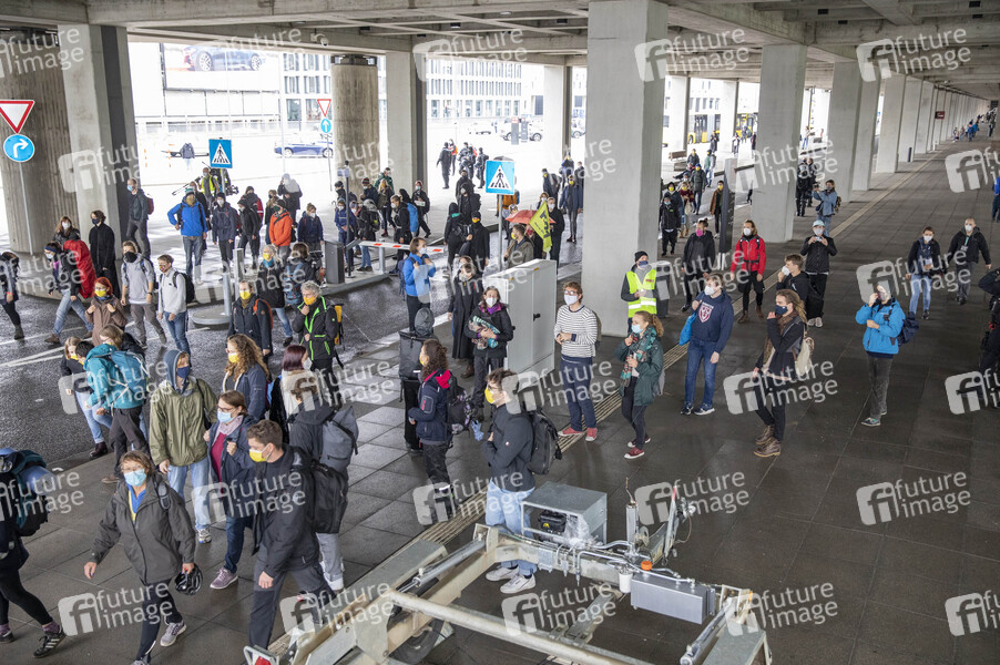 Protestaktionen von Mitgliedern des Bündnisses 'Am Boden bleiben' bei der Eröffnung des Flughafens Berlin-Brandenburg (BER). Schönefeld, 31.10.2020