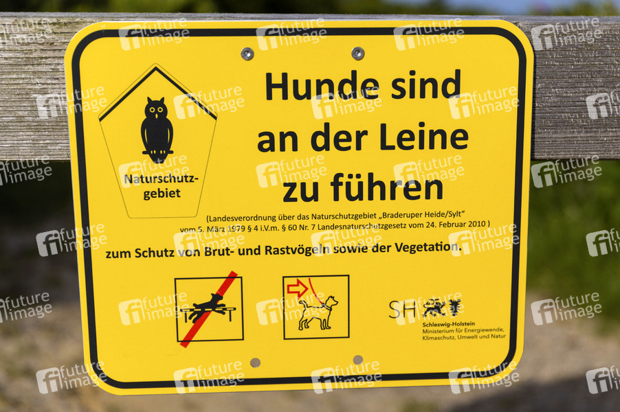 NSG, BNatSchG, Lebensstätten, Biotopen, Tiuerarten, Pflanzenarten, Schutzgebietsverordnung, Bußgeld, Schutzgebietskategorie, natürliche Ressourcen bewahren, Erhalt der biologischer Vielfalt, Hinweisschild 'Hunde sind an der Leine zu führen', Leinenpflicht, Symbolbild, Themenbild