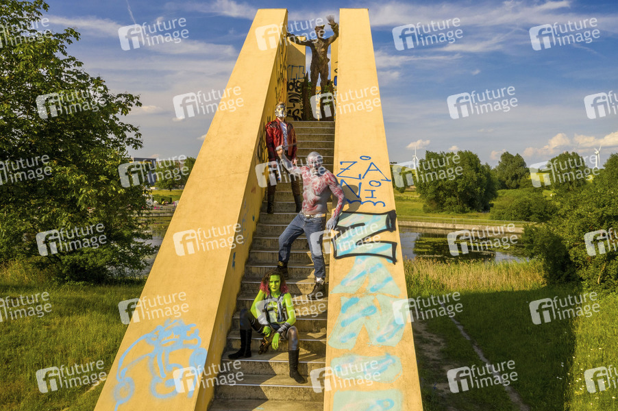 GEEK ART - Bodypainting meets SciFi, Fantasy and more: 'Guardians of the Galaxy' Photoshooting mit Janina Stein als Gamora, Fred Krull als Drax, Enrico Lein als Groot und Paul Skupin als Star-Lord auf dem Expo Gelände. Laatzen, 25.06.2019 - Ein Projekt des Fotografen Tschiponnique Skupin und des Bodypainters und Transformakers Enrico Lein