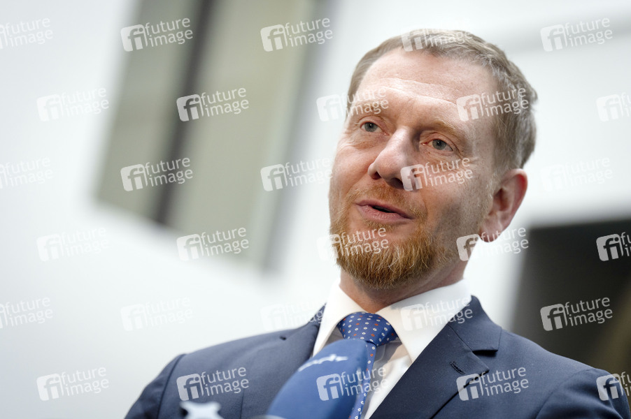 Michael Kretschmer beim Pressestatement am Rande der 1057. Sitzung des Bundesrates im Plenarsaal des Preußischen Herrenhauses. Berlin, 26.09.2025