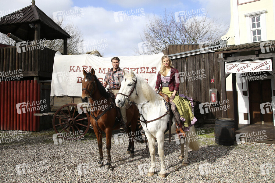 Raul Richter und Larissa Marolt beim Pressetermin zur Vorstellung des neuen Winnetou und der Gaststars der Karl-May-Spiele 2019 im Indian Village. Bad Segeberg, 08.03.2019