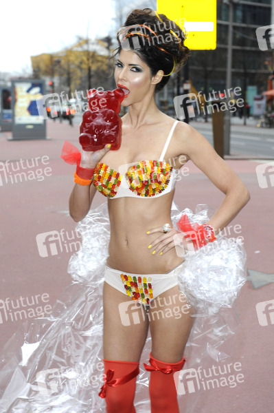 Micaela Schäfer präsentiert ihren persönlichen Berlinale Bären auf dem Boulevard der Stars, Berlin