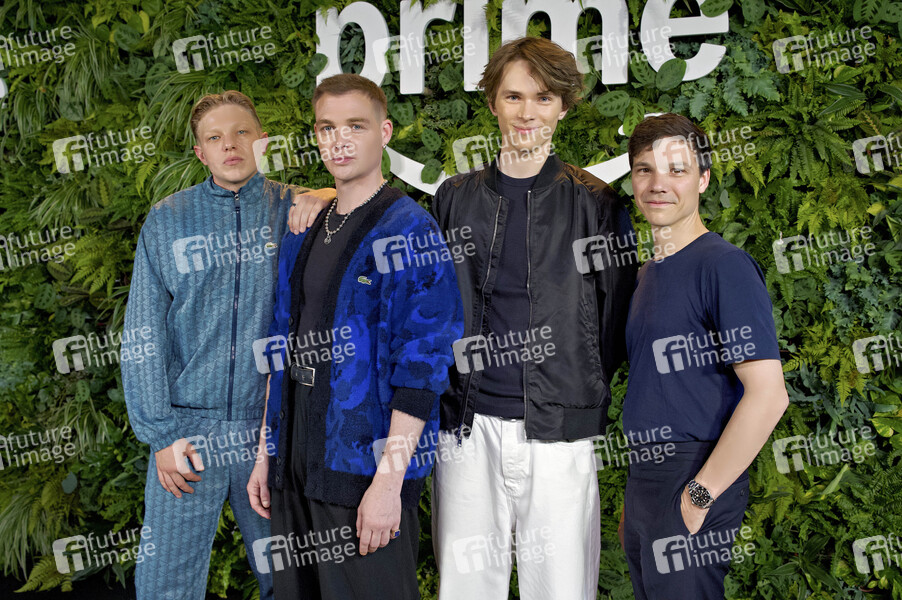 Leonard Kunz, David Schütter, Yoran Leicher und Sebastian Urzendowsky bei der Programmpräsentation 'Amazon Prime Video Presents 2025' in dem Balloni Hallen. Köln, 04.06.2025