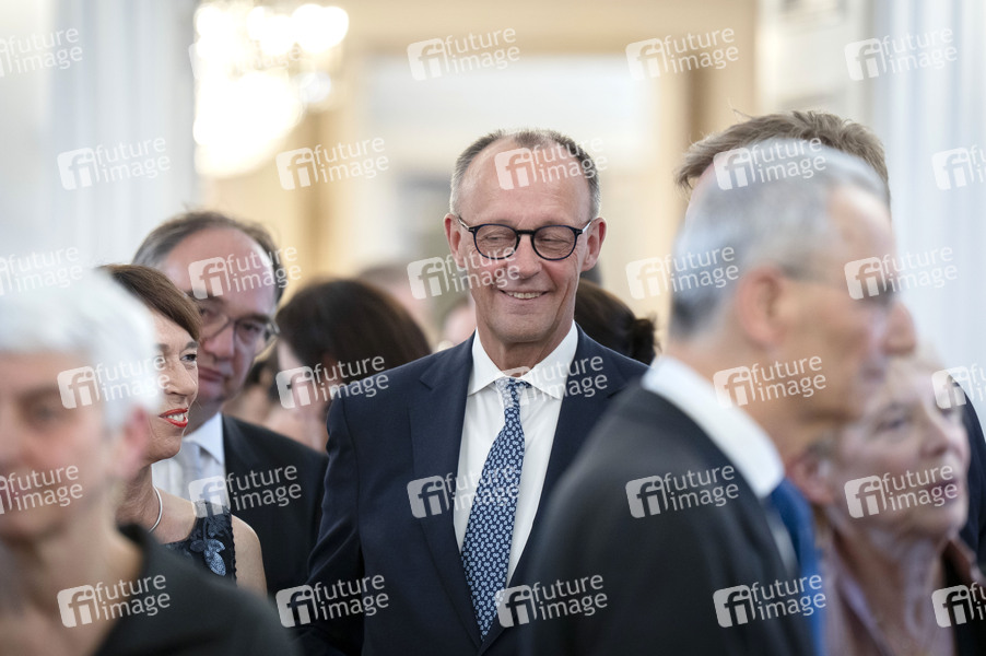 Friedrich Merz beim festlichen Abendessen zur Würdigung des 60-jährigen Jubiläums der Aufnahme diplomatischer Beziehungen zwischen der Bundesrepublik Deutschland und Israel am 12. Mai 1965 im Schloss Bellevue. Berlin, 12.05.2025