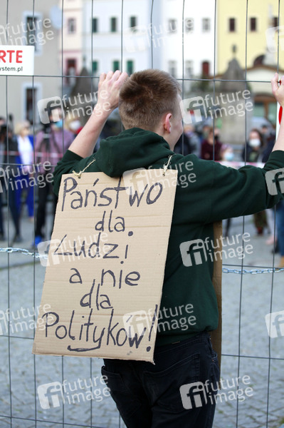 Demonstranten protestieren gegen die geschlossene Grenze zwischen Zgorzelec und Görlitz. Zur Eindämmung des Coronaviruses haben unter anderem Polen und Tschechien Mitte März die Grenzen nach Deutschland geschlossen. Hintergrund des Protestes sind die aktuellen Einschränkungen für Arbeiter, die normalerweise täglich nach Deutschland pendeln, jetzt aber nach Wiedereinreise nach Polen in zweiwöchige Quarantäne müssten. Außerdem sind grenzübergreifende, familiäre Kontakte durch die geschlossenen Grenzen nahezu ausgeschlossen. Görlitz, 24.04.2020