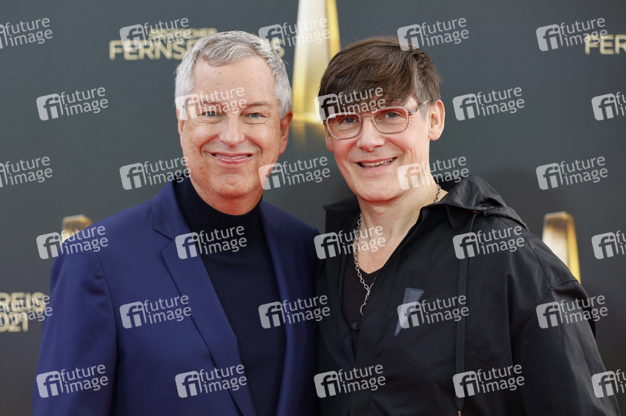 Thomas Hermanns mit Ehemann Wolfgang Macht bei der Verleihung des Deutschen Fernsehpreises 2021 im Tanzbrunnen. Köln, 16.09.2021