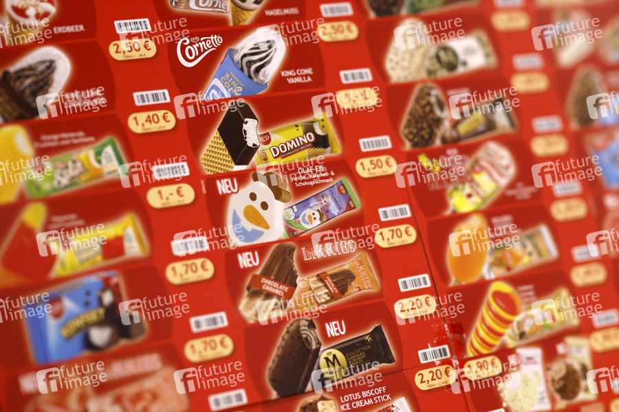 Eis am Stiel, Eismarke, Unilever, Speiseeis, Eis essen, Eisessen, Eisdiele, Fruchteis, Milcheis, Milchspeiseeis, Abkühlung, gefroren, schmelzen, Erfrischung, Cornetto, Magnum, Solero, Riesen Happen, Nogger, Domino, King Cone, Capri, Mini Milk, Likkies, Twister, Olaf Eis, Frigo, Eskimo, Algida, Symbolbild, Symbolfoto