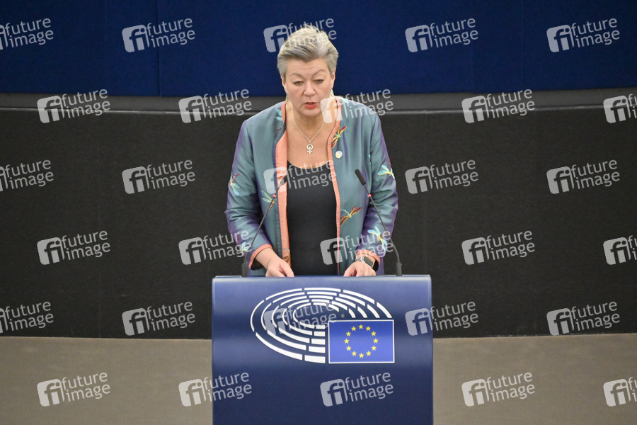 Krieg, Russland, Ukraine, Flucht, Hilfe. Flücthlinge, Europäisches Parlament, Plenum, Plenartagung, Plenardebatte, Plenarsitzung, Debatte, Rede, Politik, Strasbourg, Strassburg, Europaparlament, Europa-Politik, EU-Abgeordnete, EU-Parlament, EP, Parlament der Europäischen Union, European Parliament, European Union, Parlamentum Europaeum, MdEP, Mitglied des Europäischen Parlaments, Politikerin, Schweden, Sveriges socialdemokratiska arbetareparti, Kommissarin für Inneres der Europäischen Union