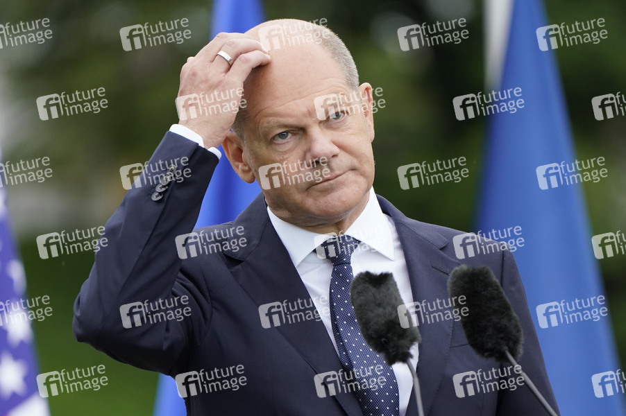 Olaf Scholz bei der Abschlusspressekonferenz zum G7-Gipfel auf Schloss Elmau. Klais, 28.06..2022