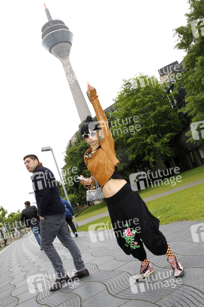 Bai Ling am Rheinturm bei einem Besuch in Düsseldorf, 29.05.2014