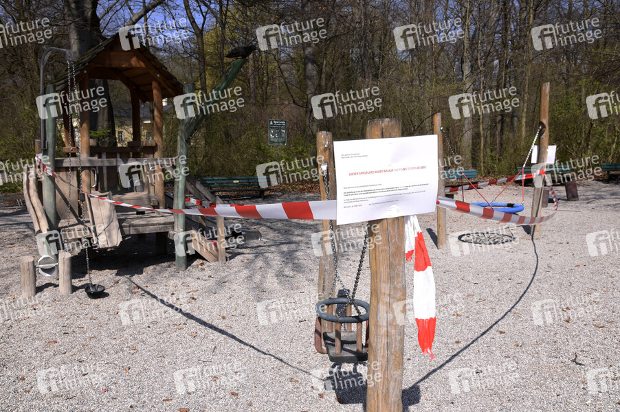 Spielplatz am Biergarten Chinesischer Turm im Englischen Garten während der Ausgangssperre wegen der Coronakrise. München, 03.04.2020