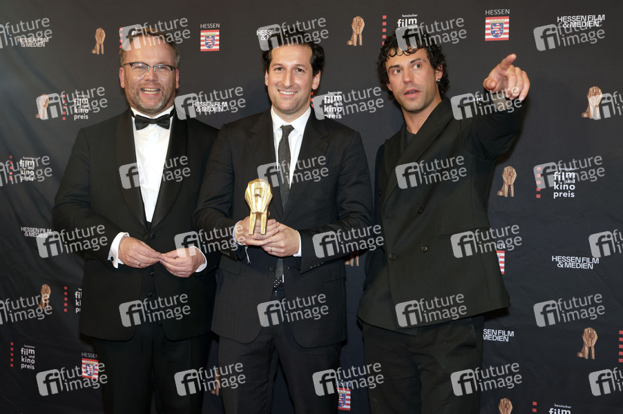 Timon Gremmels, David Hadda und Aaron Altaras bei der 35. Verleihung des Hessischen Film- und Kinopreises 2024 in der Alten Oper. Frankfurt am Main, 18.10.2024