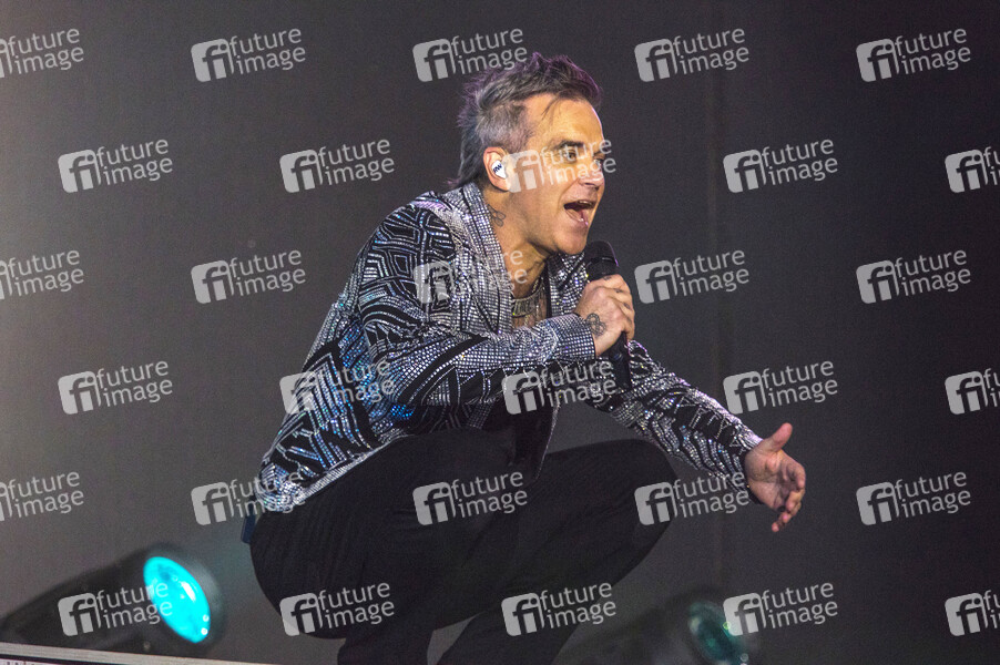 Robbie Williams live bei seinem 'One Show & One Night Only' Konzert auf dem Konzertgelände der Messe München. München, 27.08.2022