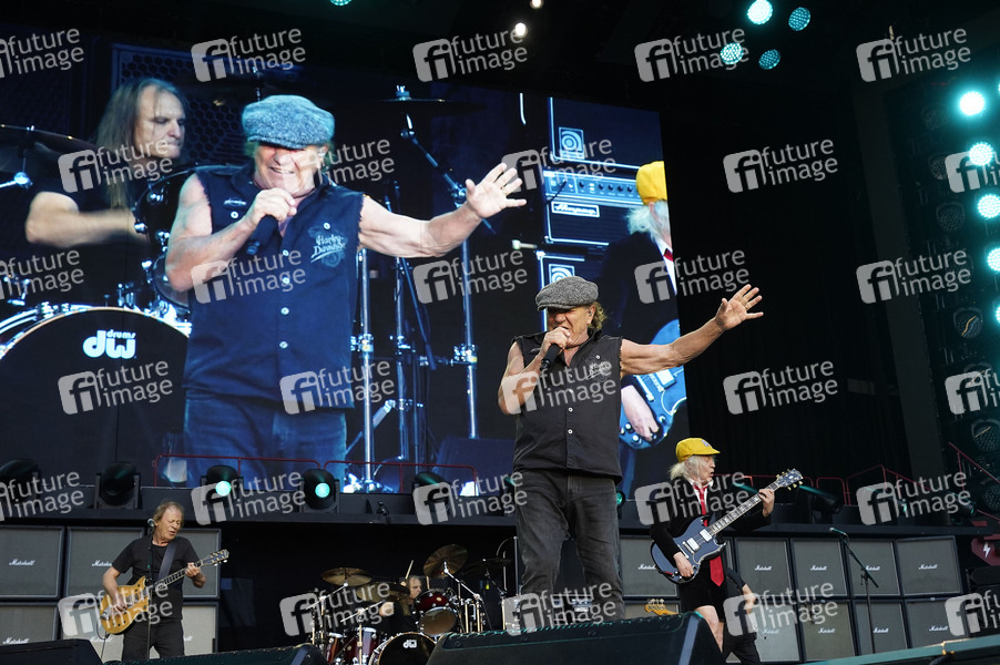 Stevie Young, Matt Laug, Brian Johnson und Angus Young von AC/DC live bei einem Konzert der 'Power Up Tour - Europa 2025' im Olympiastadion Berlin. Berlin, 30.06.2025