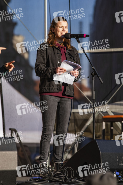 Großdemo, Aktion, Banner, Demo, Demonstrant, Demonstranten, Demonstrierende, Demonstration, Demonstrationszug, demonstrieren, Politik, Protestaktion, Demo, Protestdemo, Protestdemonstration, gegen Rechts, Rechtsextremismus, Kundgebung, gegen AfD, #ZusammenGegenRechts, #WirSindDieBrandmauer, Klimaschutz-Aktivistin, Publizistin