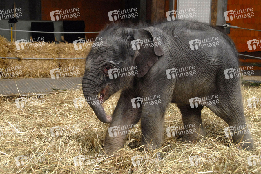 Erstes gesundes Elefantenbaby in Münchener Zoo seit über 60 Jahren. Nach 656 Tagen Tragzeit brachte Elefantenkuh Panang am 21.12.2009 um 1.33 Uhr in einer Blitzgeburt ein gesundes Elefantenmädchen zur Welt. Das asiatische Elefantenkalb ist 88 cm groß (Schulterhöhe) und wiegt 112 kg.