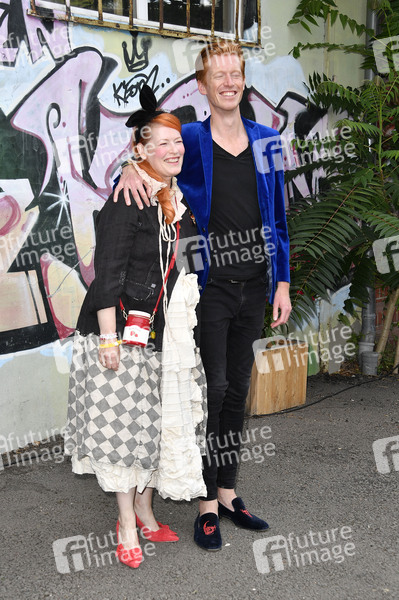 Enie van de Meiklokjes mit Ehemann Tobias Staerbo bei der Premiere der internationalen Ausstellung 'Tim Burton's Labyrinth' in der Radsetzerei auf dem RAW-Gelände. Berlin, 18.07.2024