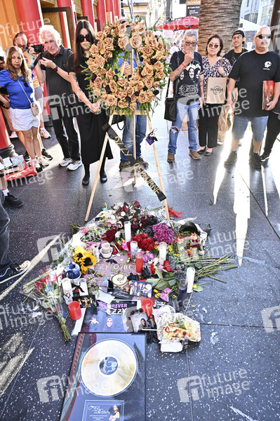 Blumen und Kerzen am Stern von Ozzy Osbourne auf dem Hollywood Walk of Fame. Der Sänger verstarb am 22.07.2025 im Alter von 76 Jahren. Los Angeles, 22.07.2025