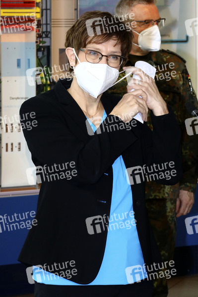 Bundesverteidigungsministerin Annegret Kramp-Karrenbauer bei der Unterzeichnung einer Erklärung für einen Beitrag der Bundeswehr bei der Bewältigung des Strukturwandels im sächsischen Braunkohlerevier in der Lausitz im Kraftwerk Boxberg. Boxberg, 31.03.2021