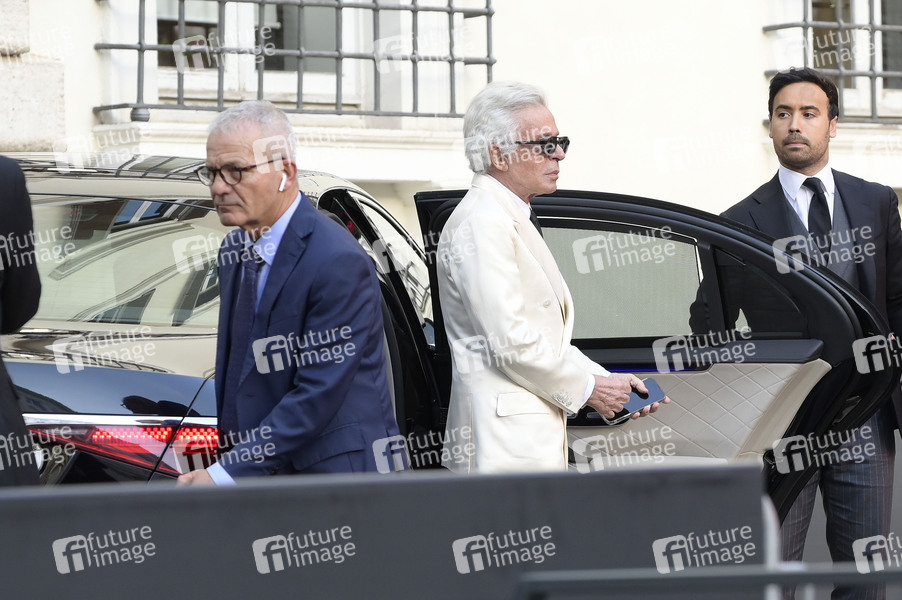 Giancarlo Giammetti bei der Ankunft zum Eröffnungsdinner der Ausstellung 'Orizzonti Rosso / Red Horizons' von der Valentino and Giancarlo Giammetti Foundation im Kultur Center PM23. Rom, 24.05.2025