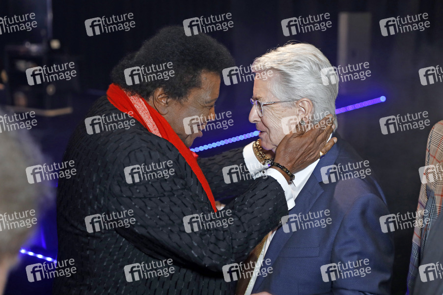Roberto Blanco und Frank Elstner bei der Verleihung der Goldenen Sonne 2019 während der Sonnenklar.TV Gala im Wunderland Kalkar. Kalkar, 27.04.2019